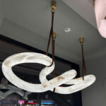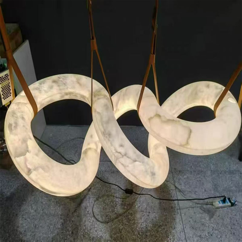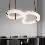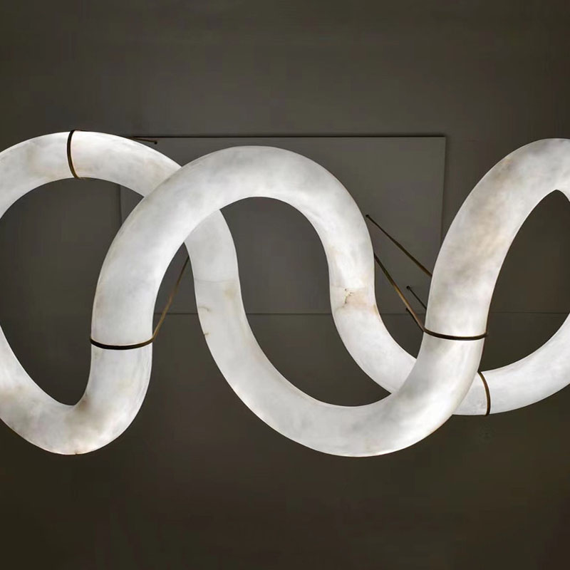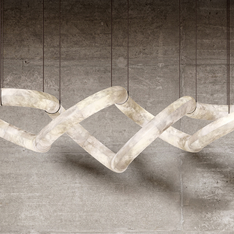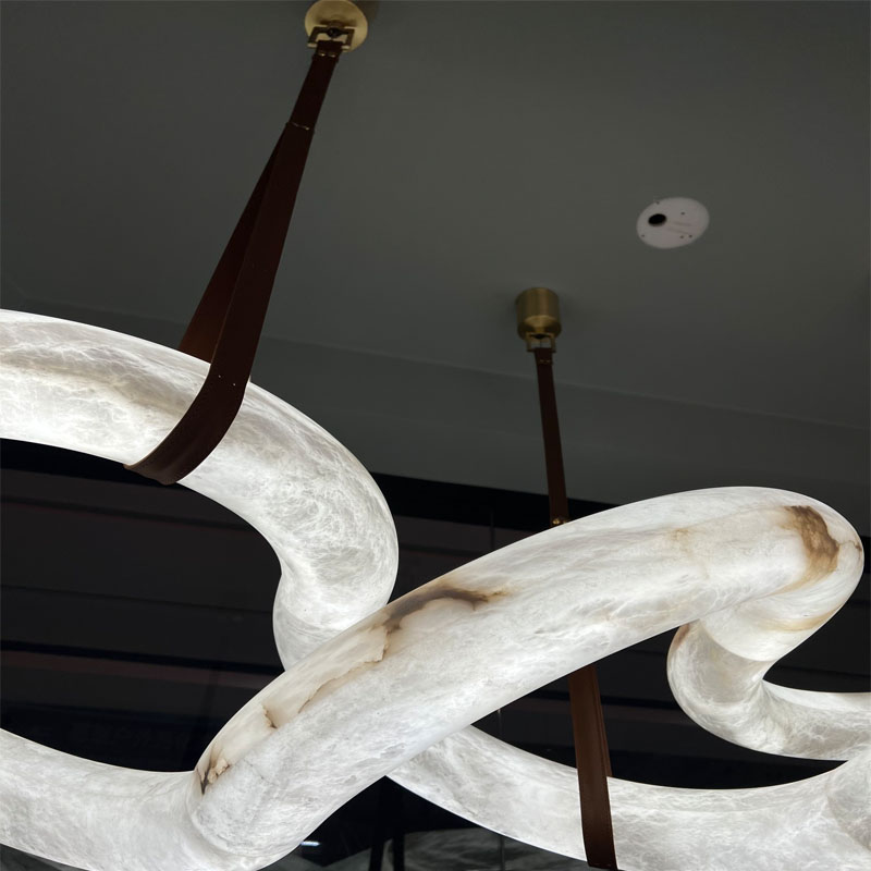 EighteightLC0050 Alabaster light is made of leather, alabaster and H56 copper.