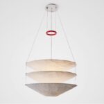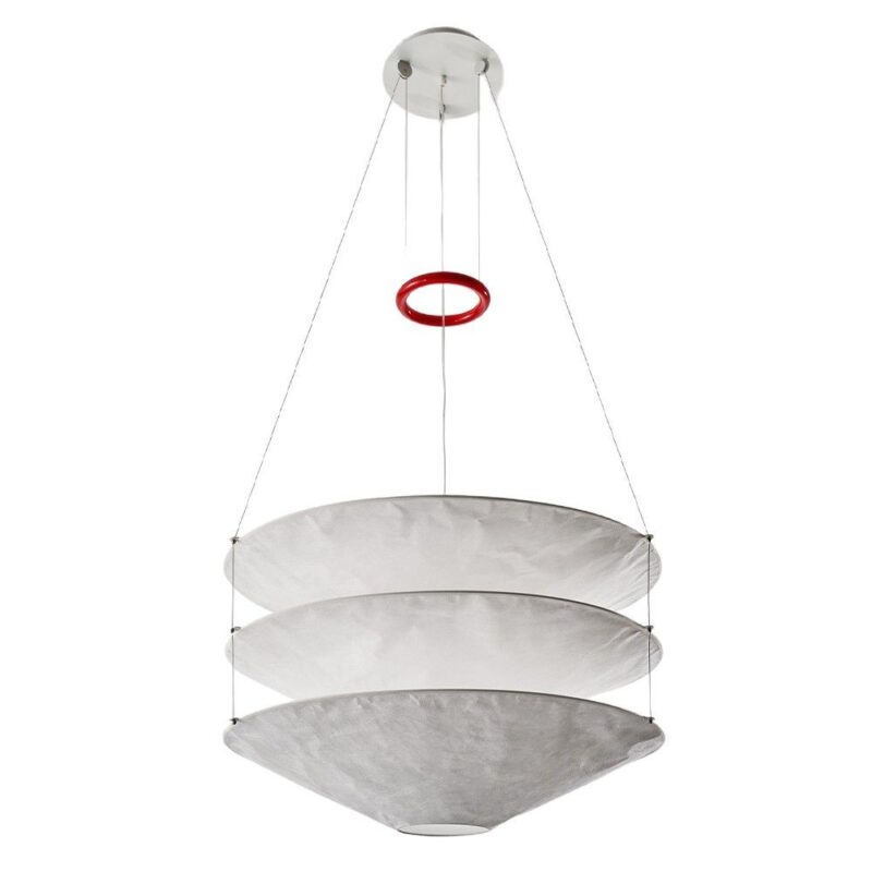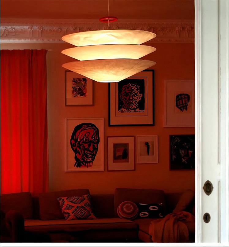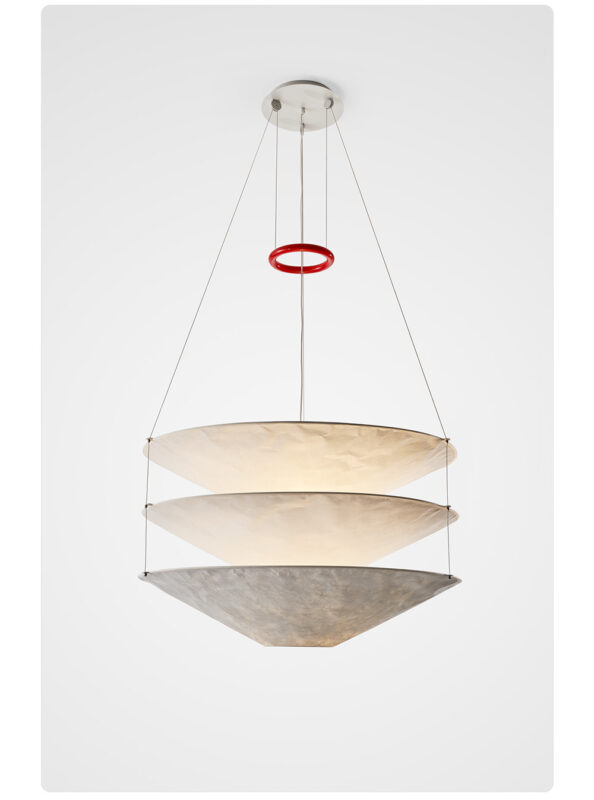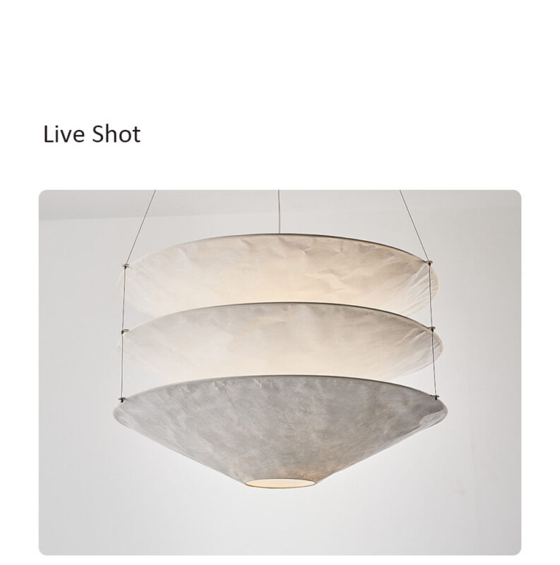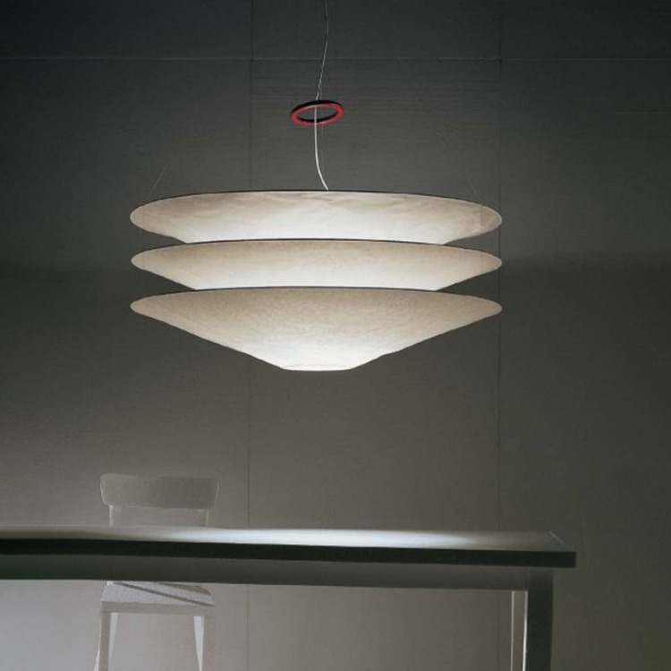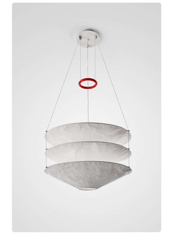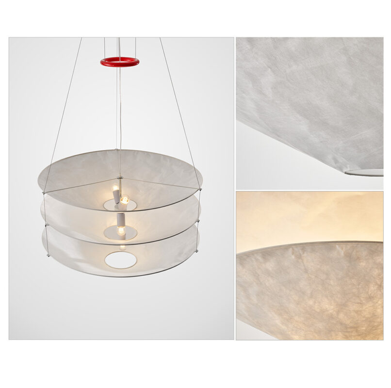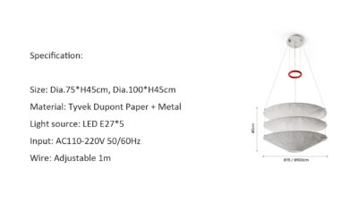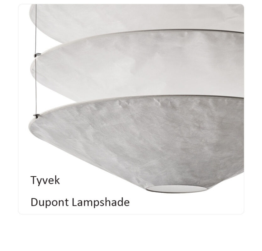 Floatation suspension light is made of metal and Tyvek Dupont paper.