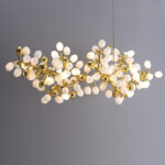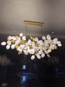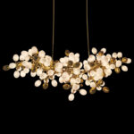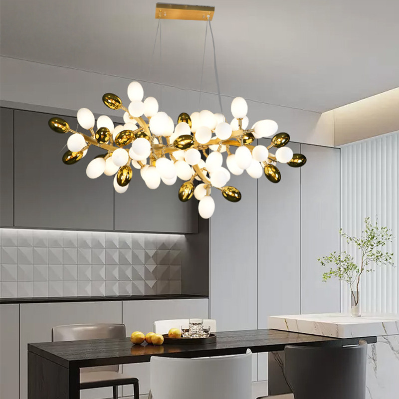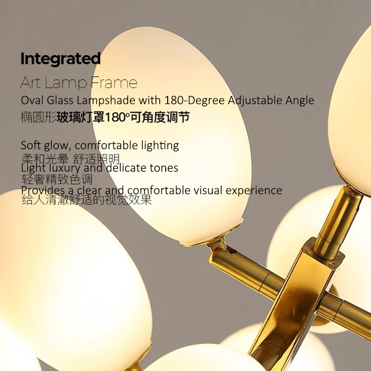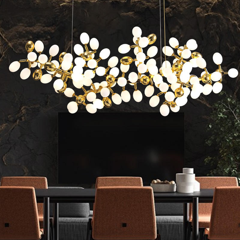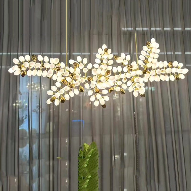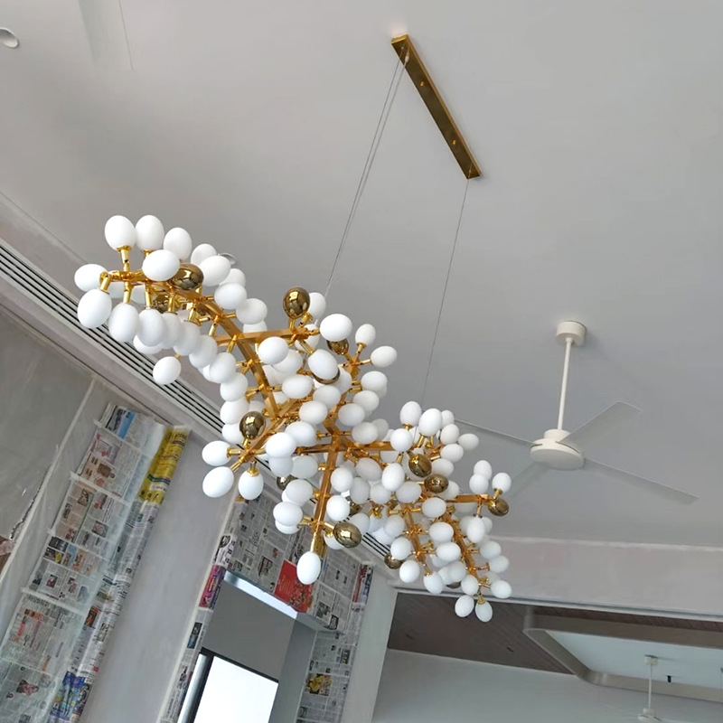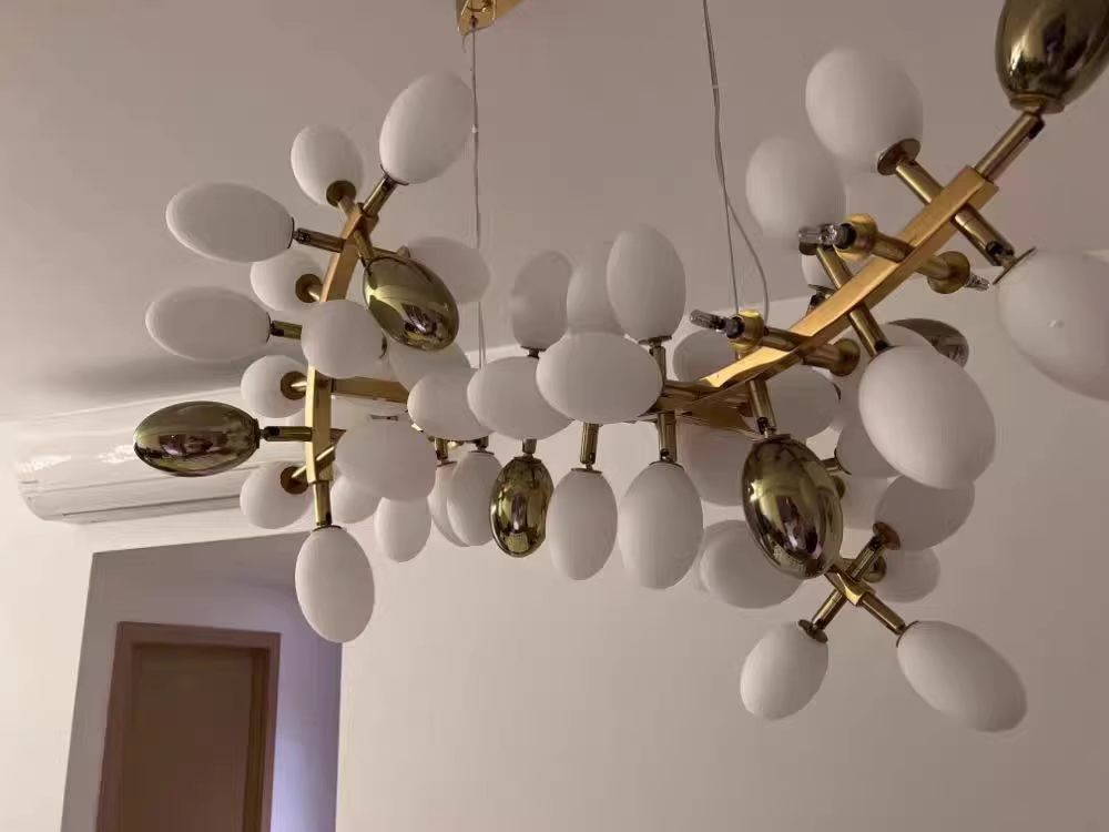 Grape pro chandelier is made of brass and opal glass lampshade