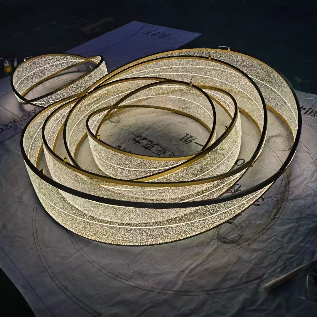 Mobius band chandelier is made of aluminum alloy and acrylic.