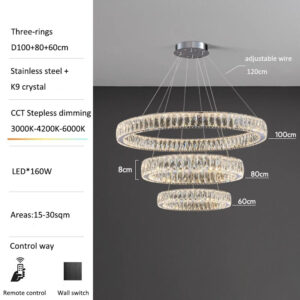 Mr. Sole chandelier is made of K9 crystal and stainless steel.