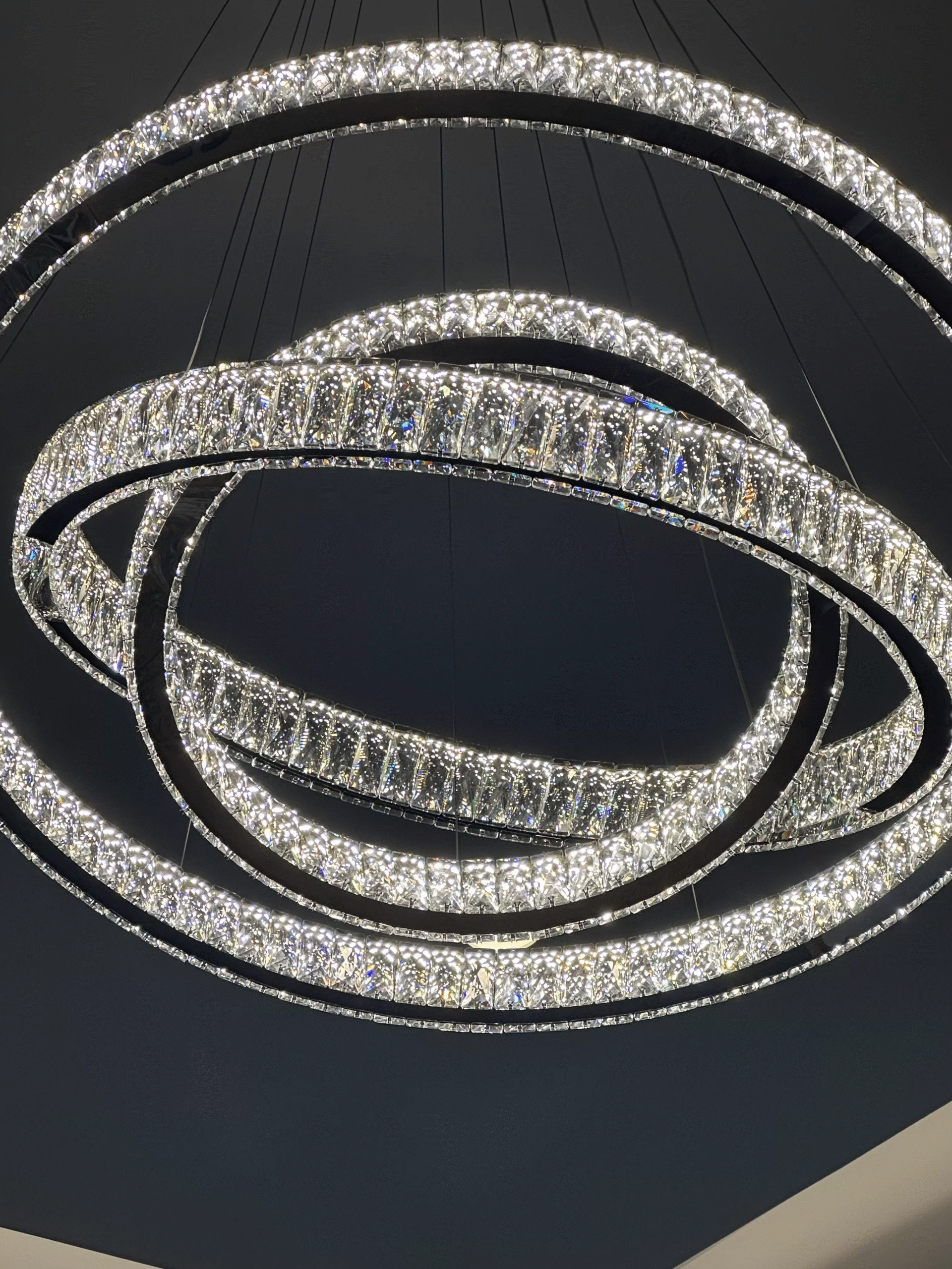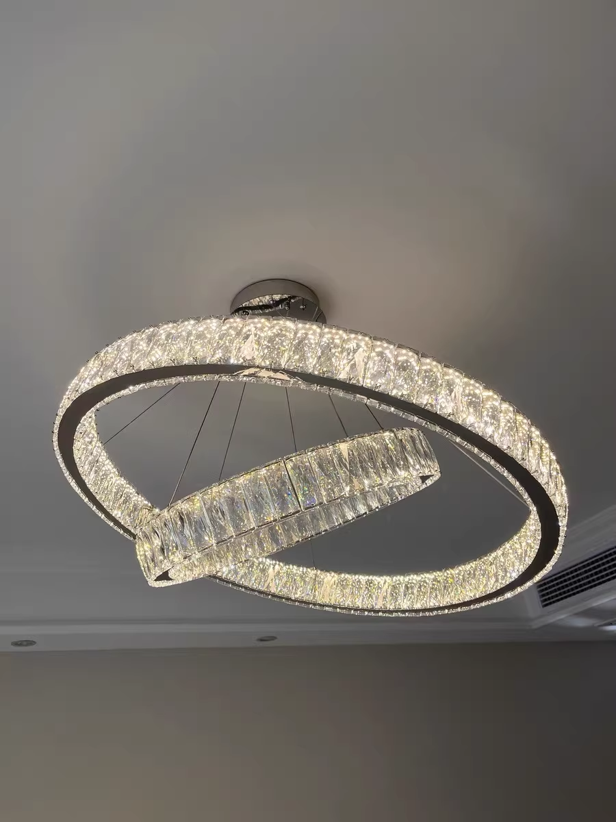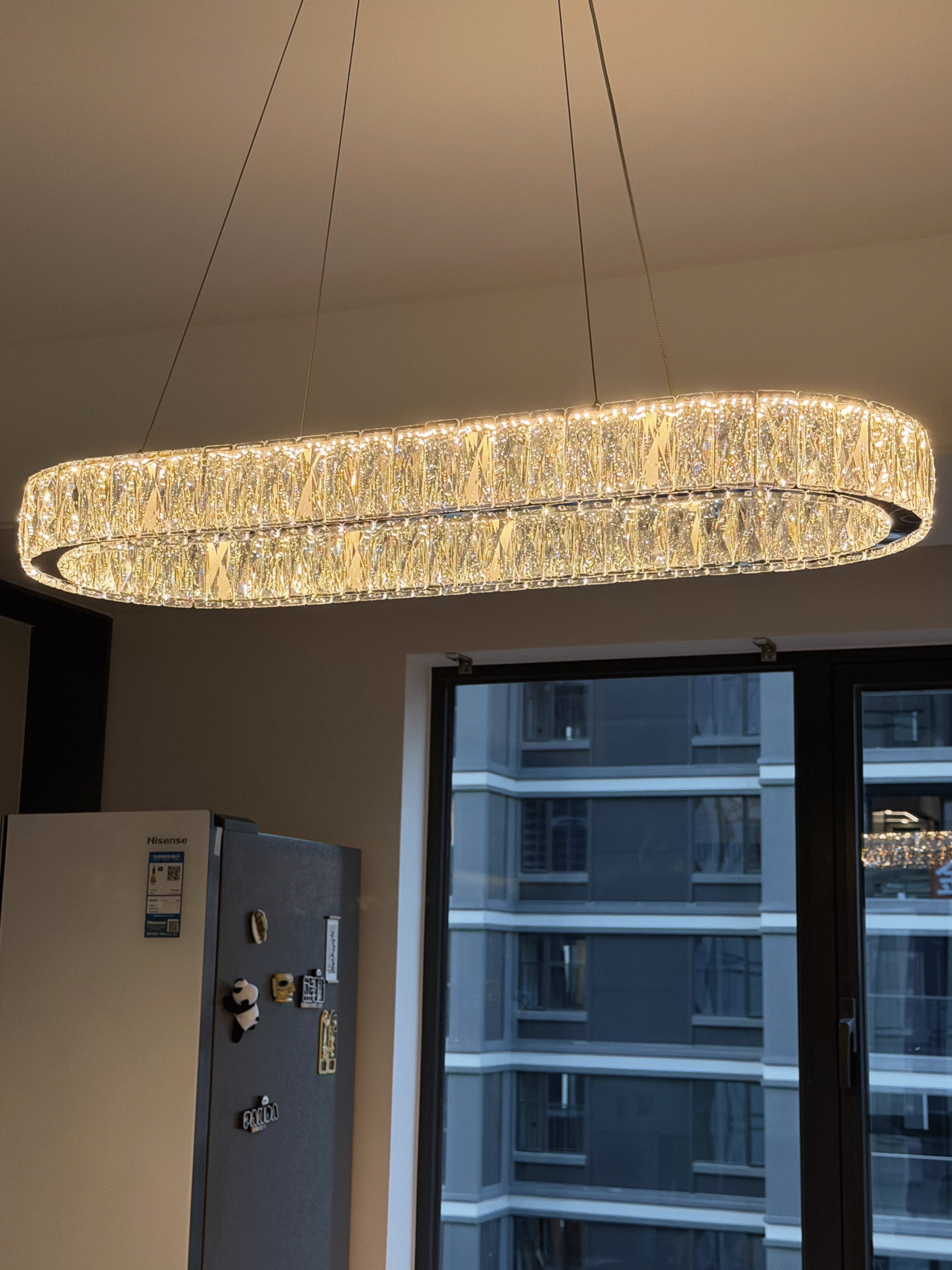 Mr. Sole chandelier is made of K9 crystal and stainless steel.