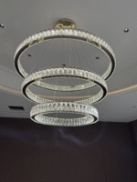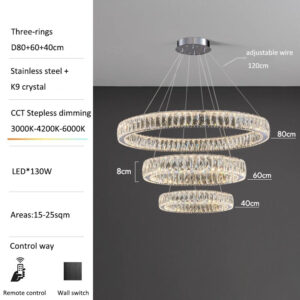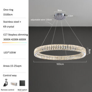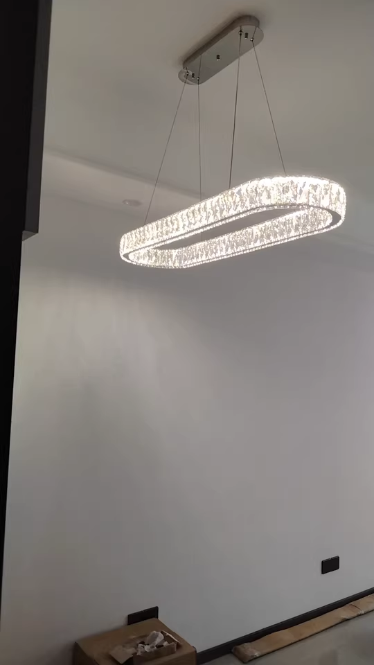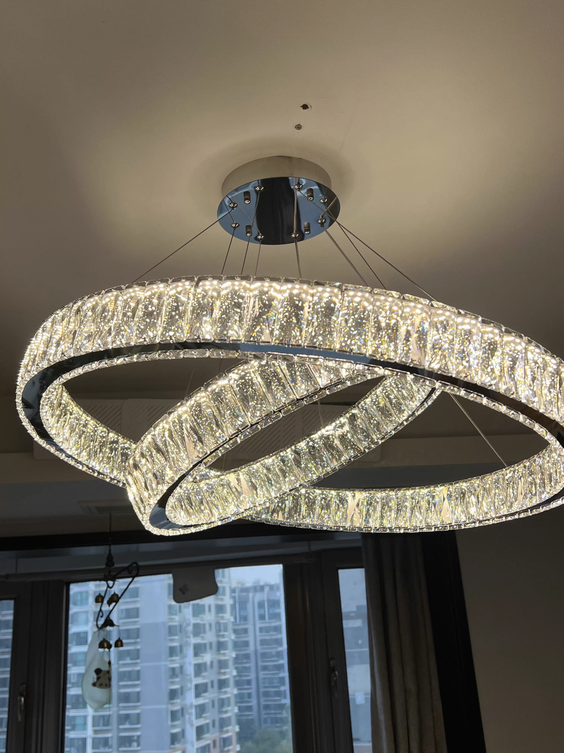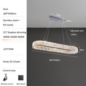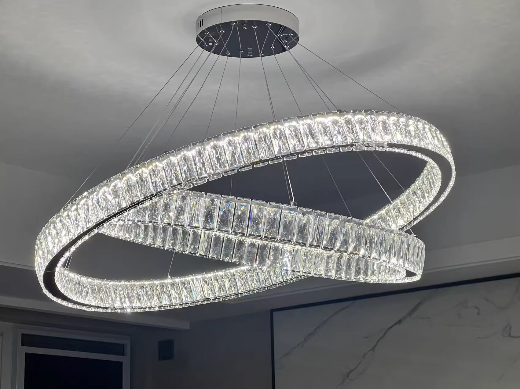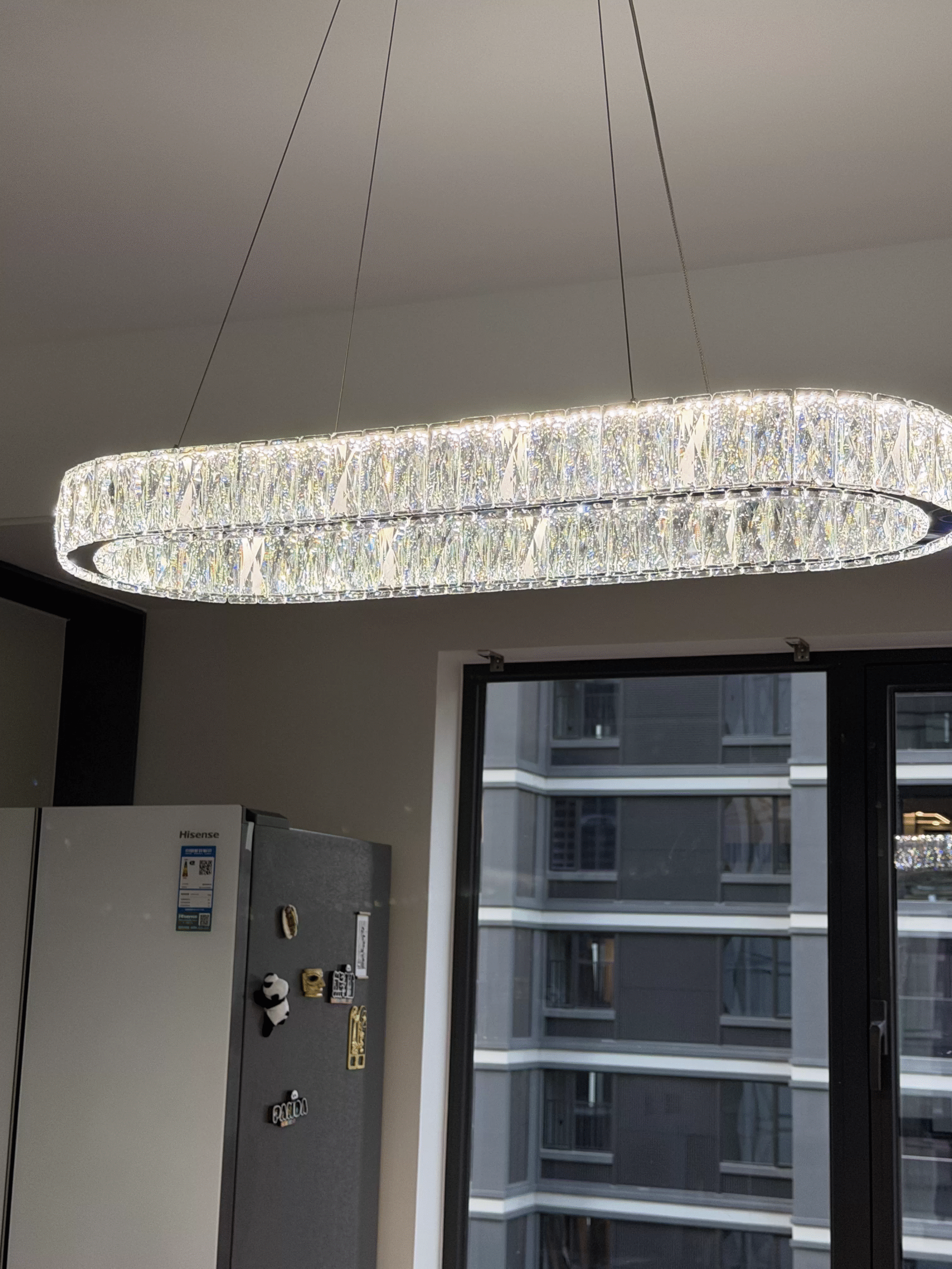 Mr. Sole chandelier is made of K9 crystal and stainless steel.