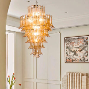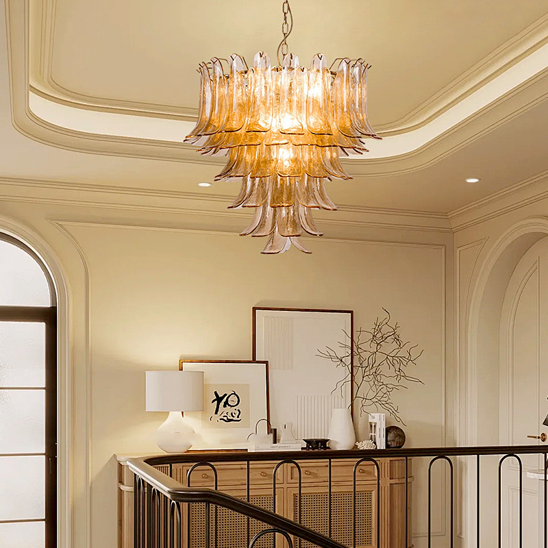 Murano bloom chandelier is made of glass and ironwork.