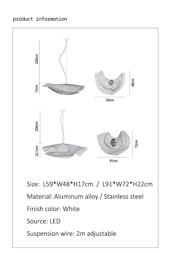 Mytilus pendant light is made of aluminum alloy or stainless steel.