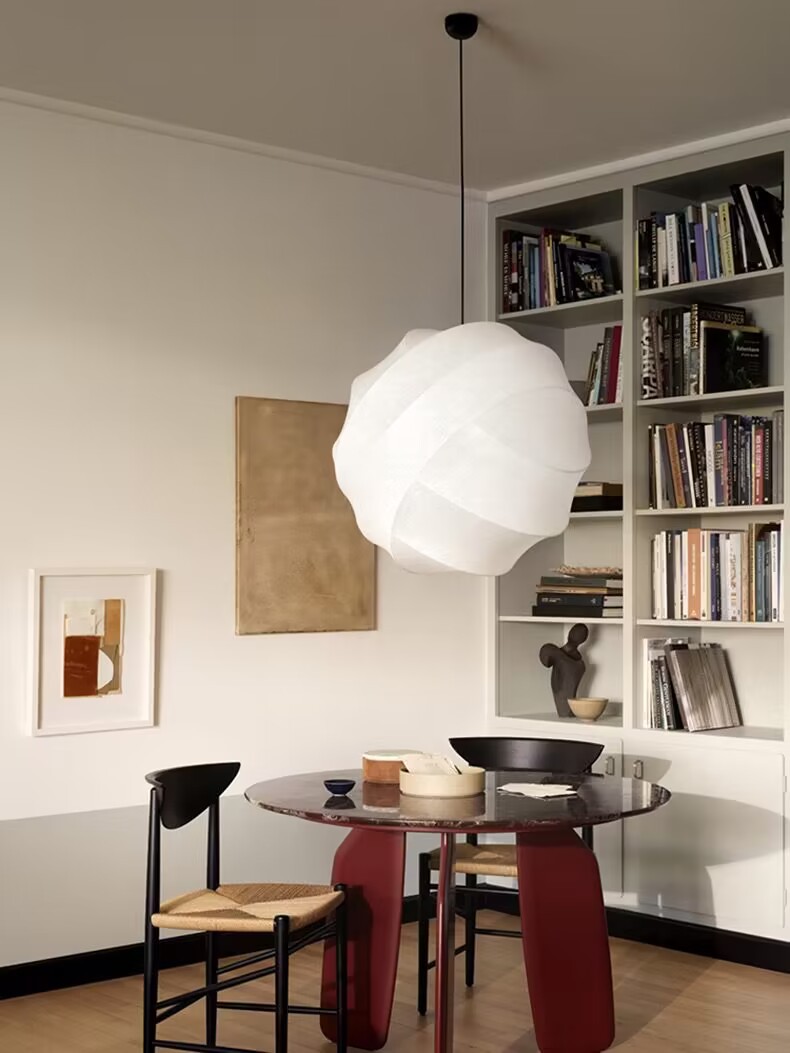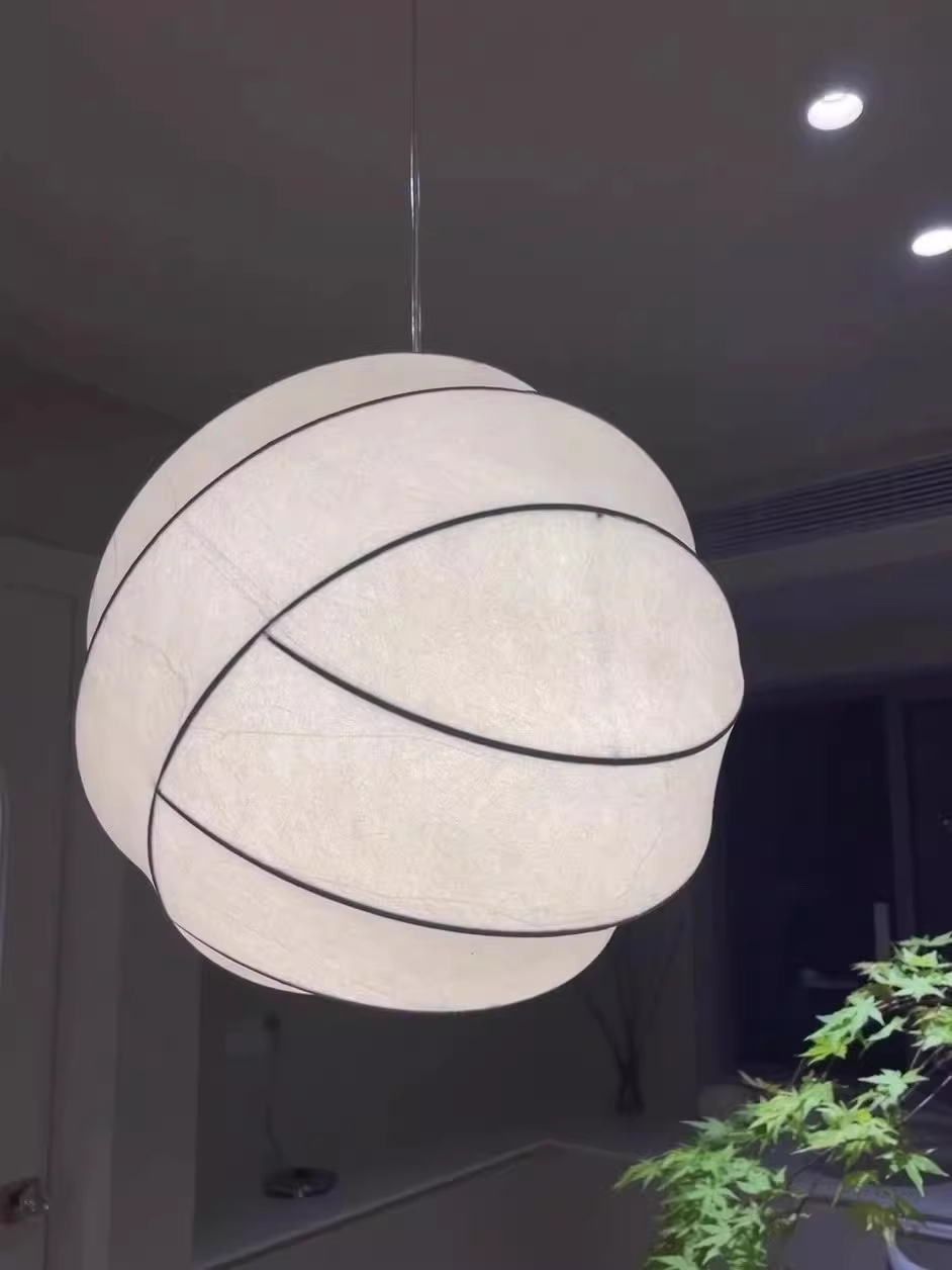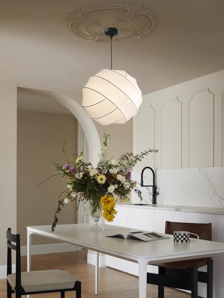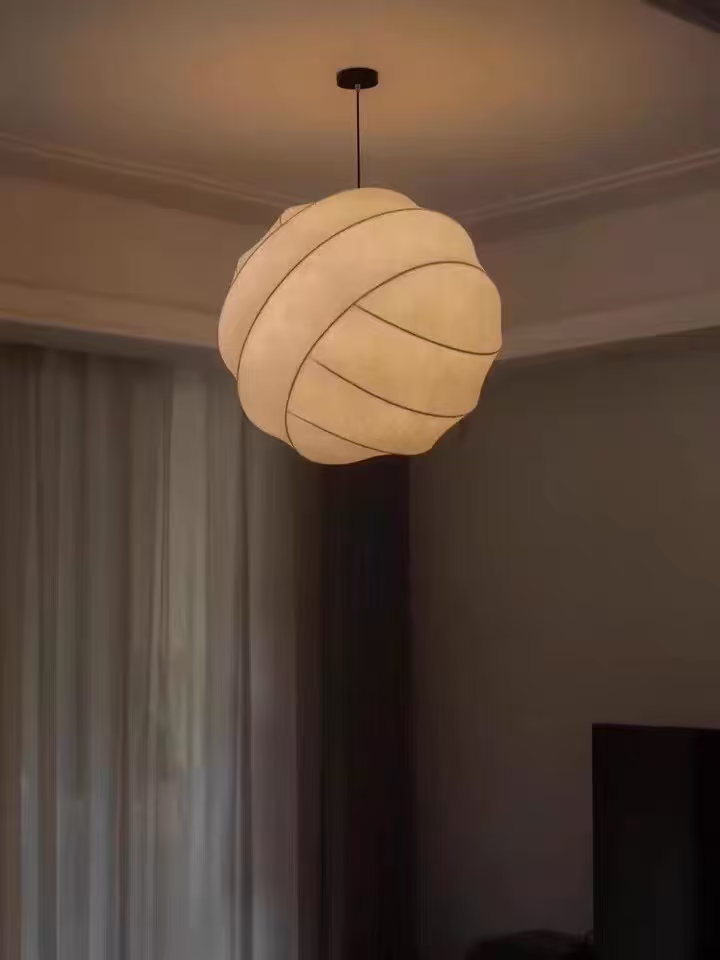 Turner pendant light is made of metal and natural silk/high-polymer.